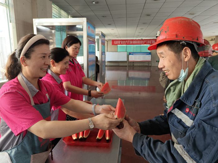 入夏以來,該礦工會根據氣溫不斷升高的實際情況,按照防暑降溫工作要求和“送清涼”活動方案,積極組織人員精心采購了西瓜,并在到貨后,第一時間進行發放,切實做好職工防暑降溫后勤保障工作,用實際行動讓職工“清涼”度夏。(撰稿:張麗霞 審核:張萬學)