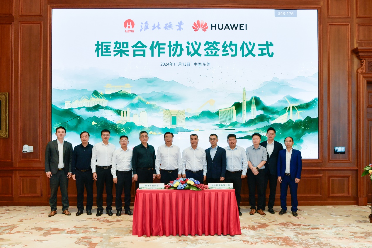 2024年11月13日,淮北礦業集團與華為技術有限公司在廣東東莞簽署框架合作協議。淮北礦業集團黨委副書記、總經理孫方,華為油氣礦山軍團生態合作總裁楊文池出席簽約儀式。淮北礦業副總經理聶政,華為安徽政企副總經理張鵬作為雙方簽約代表完成協議簽署。