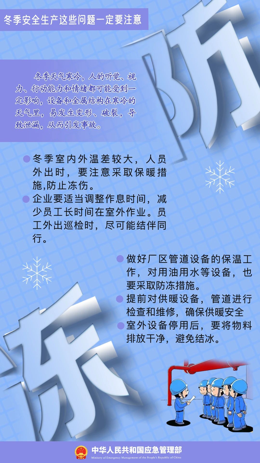 冬季寒冷、干燥,容易發生凍傷、中毒、滑跌等人身傷害事故,給企業安全生產帶來影響。冬季安全生產要注意哪些問題?一起學習↓↓↓